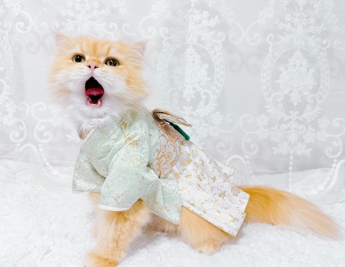 ハリのある生地は愛猫の動きにも着崩れせずゆったり締め付けない仕上がり