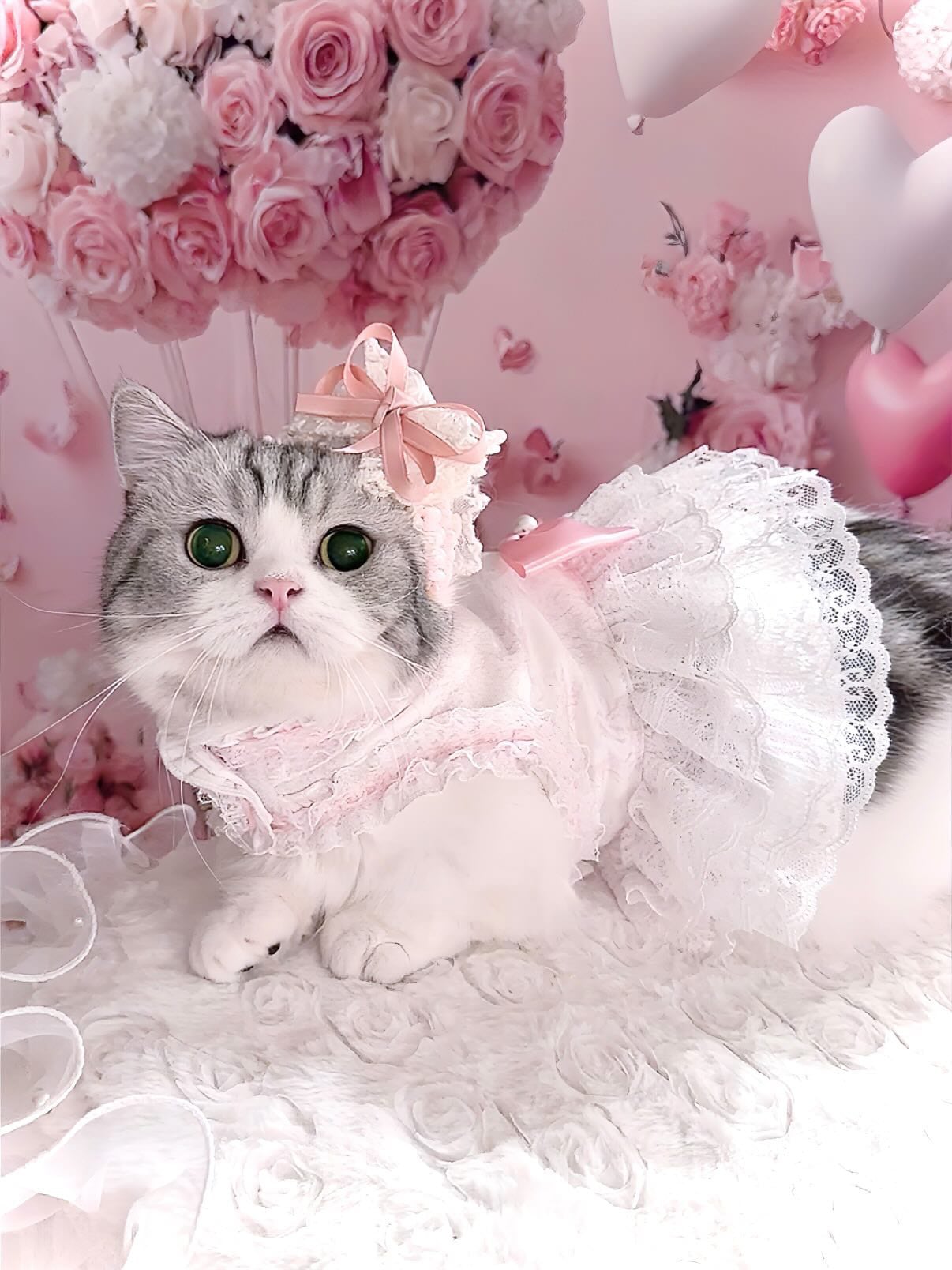#初めてのお出かけ #ハーネスカバー #ベビーピンク #トワルドジュイ生地 #フランス #猫とお出かけ #猫のファッション