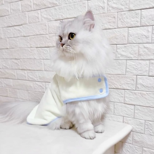 *・゜゚・*繊細な猫ちゃんの肌に優しい可愛らしいポンチョ型バスローブ「Poncho pale blue」・゜゚・*